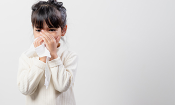 気管に入ったウイルスなどの侵入物に対して、体外に放出する防御反応の一種に咳があります。咳を伴う小児疾患では、風邪やインフルエンザ、アレルギーなどが主な例として挙げられます。お子さんに咳の症状がある、長く続くなどの場合は、お早めにご相談ください。